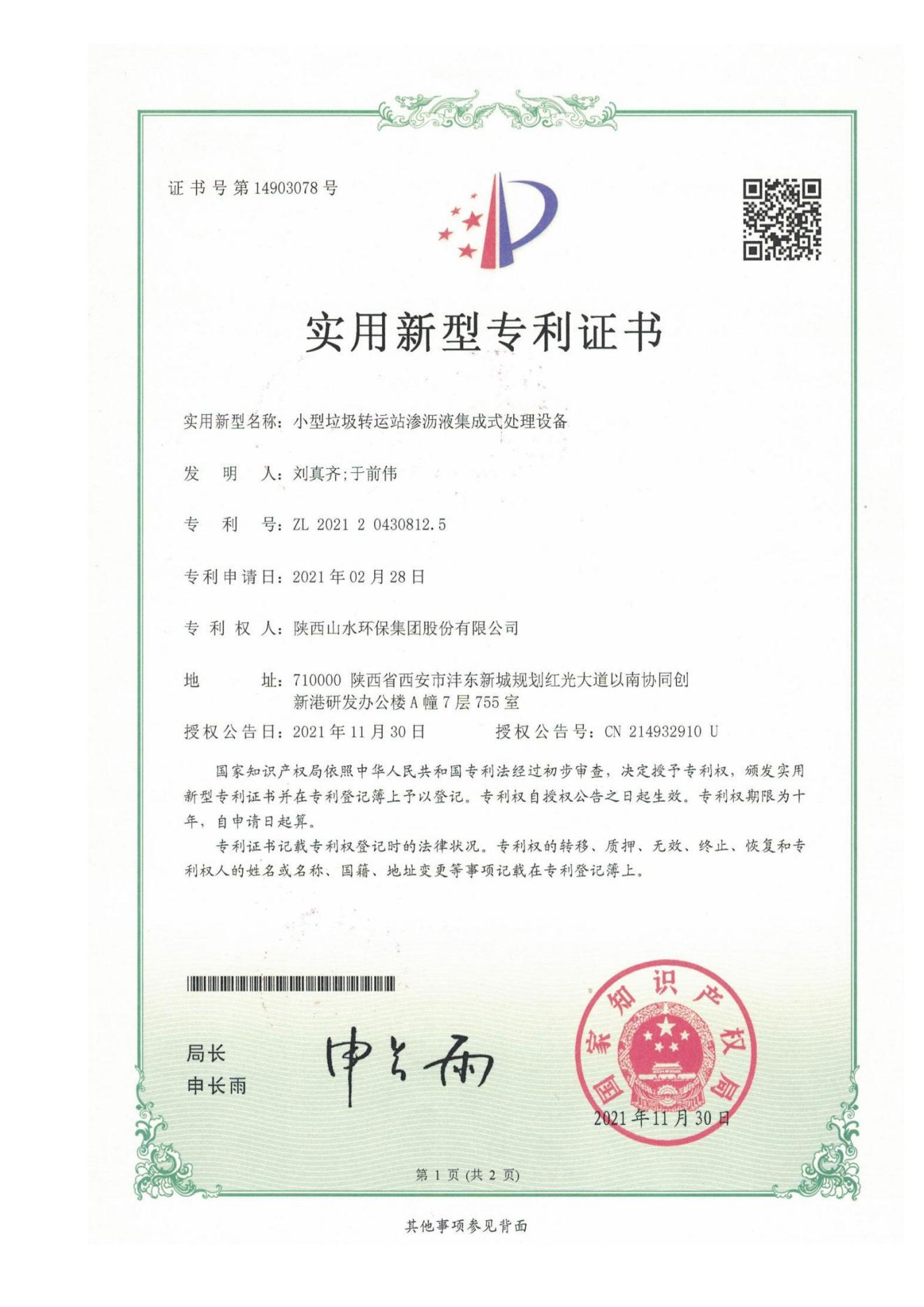 专利证书
