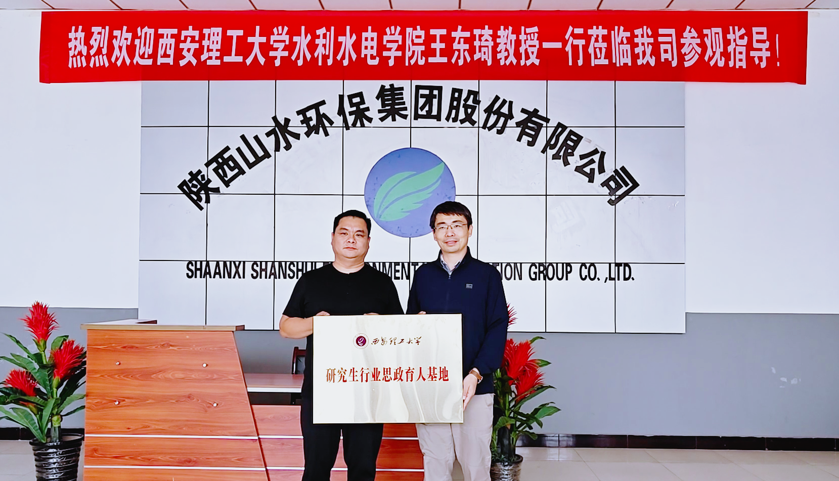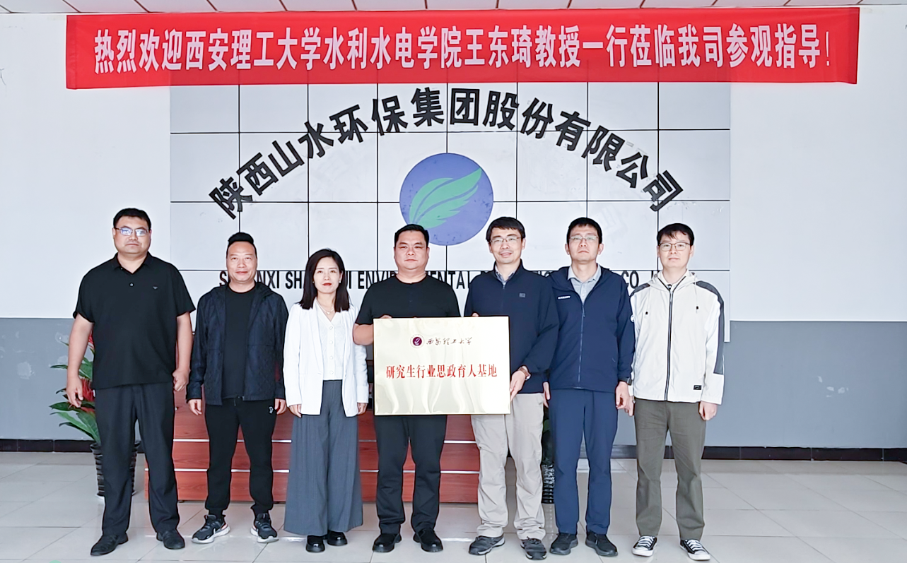 9 月 18 日下午,西安理工大学水利水电学院市政与环境工程系主任王东琦教授、张耀中副主任一行莅临陕西山水环保集团股份有限公司乾县生产基地参观指导。公司董事长刘真齐、总经理周海涛、刘娜、于前伟热情接待,双方先以 “污水、净水技术交流” 为主题展开深度研讨,随后共同举行 “西安理工大学研究生行业思政育人基地” 挂牌仪式 —— 随着牌匾正式亮相,标志着校企在技术协同与人才思政培养领域的合作迈入新阶段,为后续资源共享、优势互补搭建起全新桥梁。