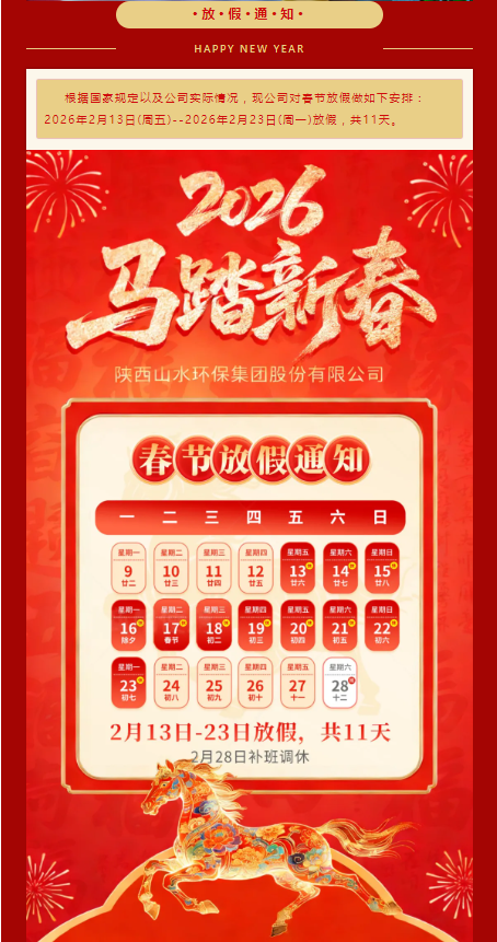 春风送暖,马到福来|陕西山水环保集团:春节祝福及放假安排
